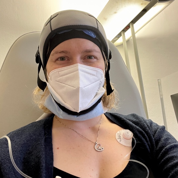 Ein besonderer Moment für mich war, dass ich trotz der Behandlung einen Großteil meiner Haare behalten konnte. Dank einer Kühlkappe, die den Haarausfall reduzieren soll, blieben etwa 85 % meines Haares erhalten. Natürlich fielen auch mir einige Haare aus – die Kühlkappe bietet keine hundertprozentige Sicherheit. Dennoch war dieses Ergebnis für mich ein kleines Wunder.